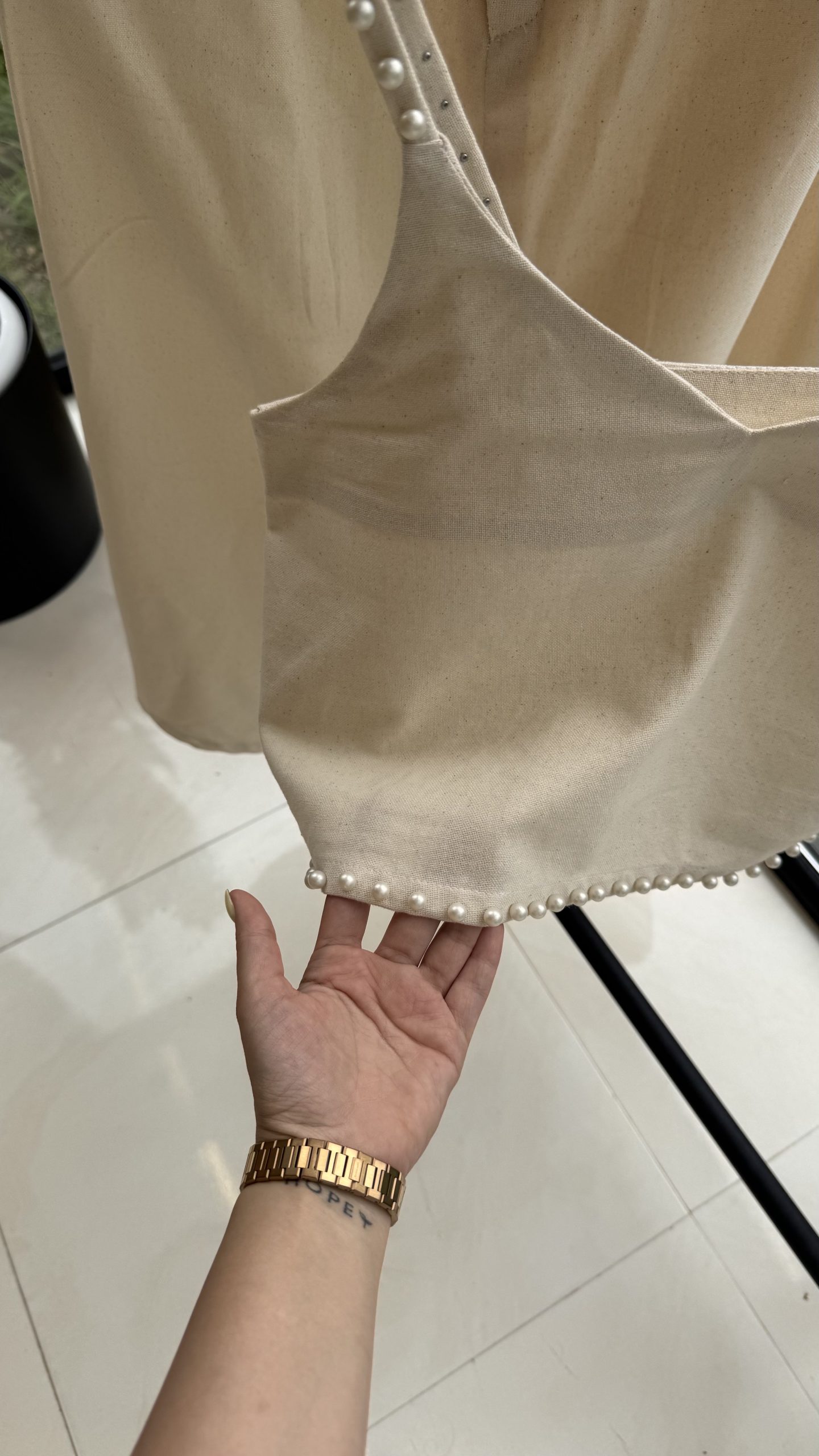 آماده سازی و ارسال این محصول 10-14 روز کاری زمان می برد جنس این کار لینن نچرال ترک می باشد شامل دو سایز می شود سایز 1 مناسب 34 تا 38 سایز 2 مناسب 40 تا 42 و 44 سایز ریز. بندها و پایین کار مروارید کار شده پشت کار بسته ست و زیپ کار نشده.